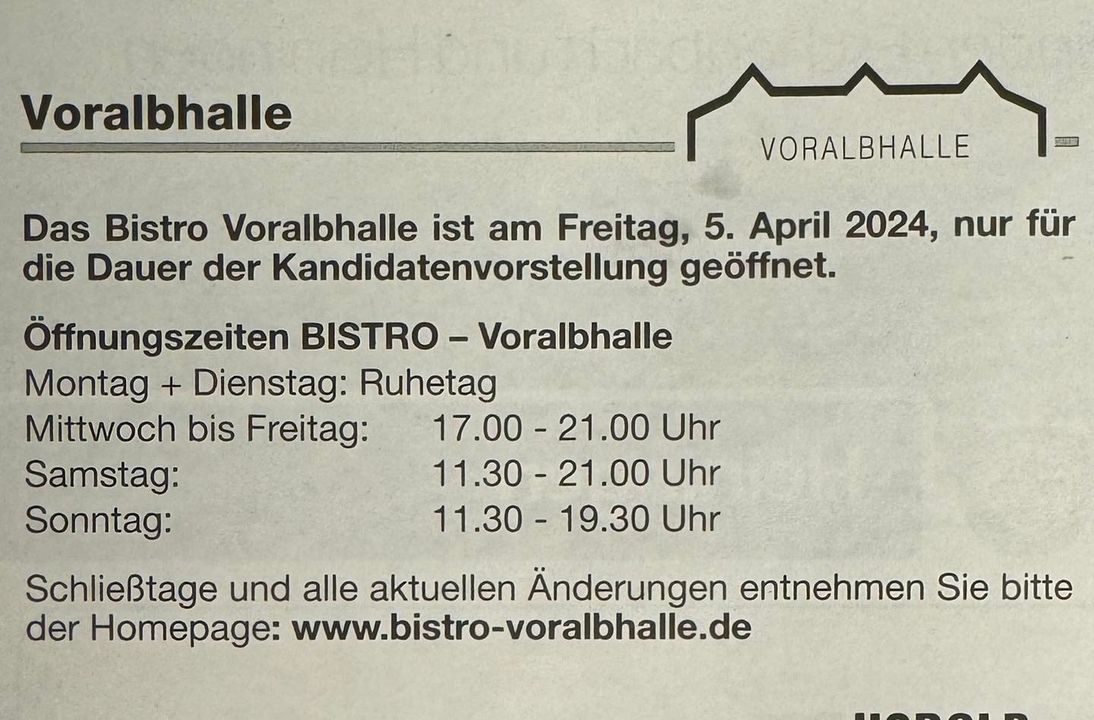 Ab heute im Bistro Voralbhalle