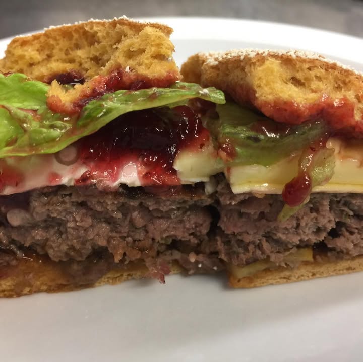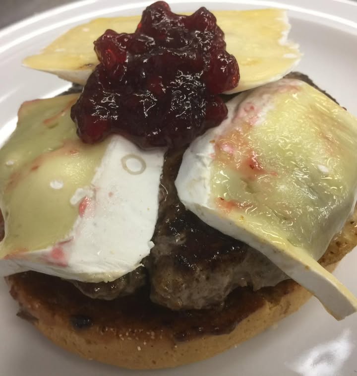Morgen gibt es wieder unseren leckeren Wildburger mit Camembert und Preiselbeeren.