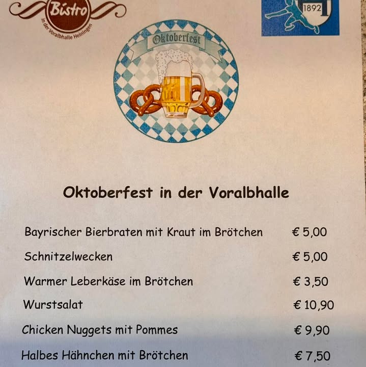 Am Samstag und Sonntag feiern wir gemeinsam mit dem TSV Heiningen Oktoberfest mit einer kleinen Speisekarte.