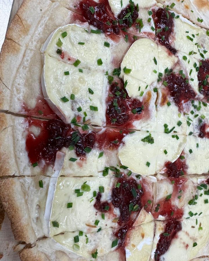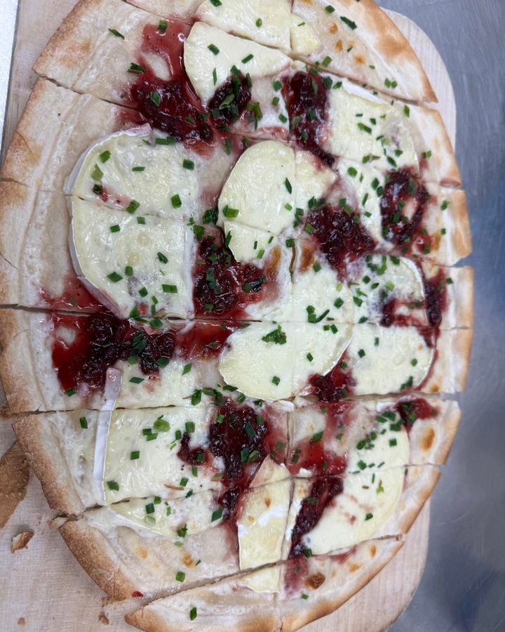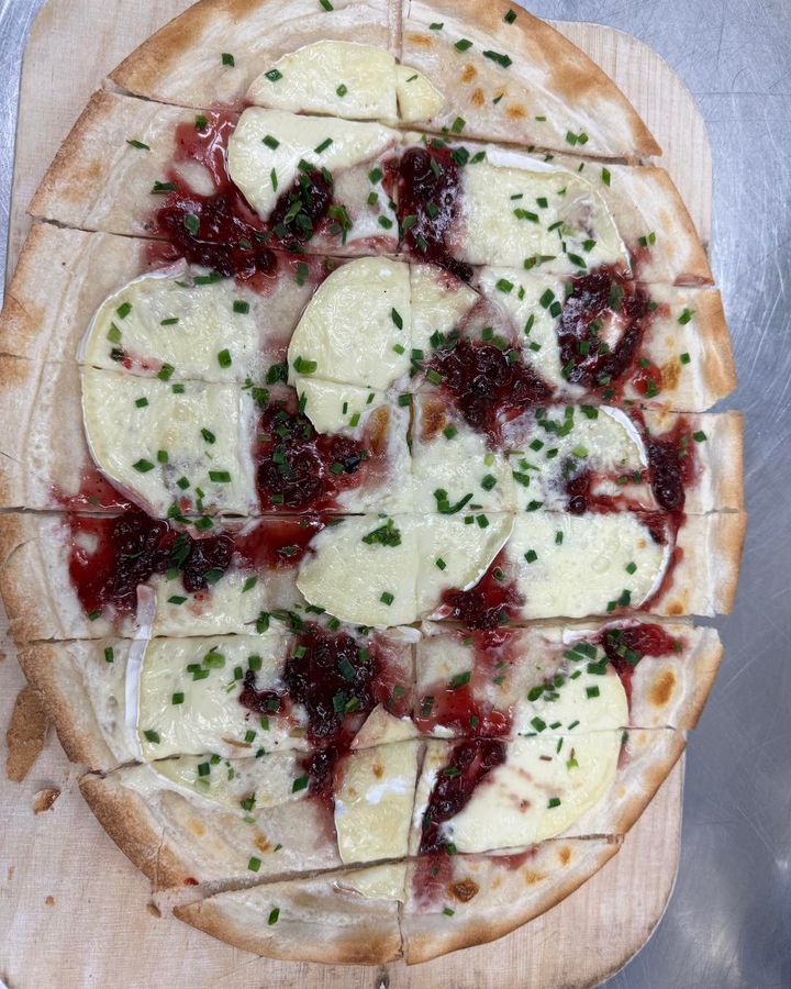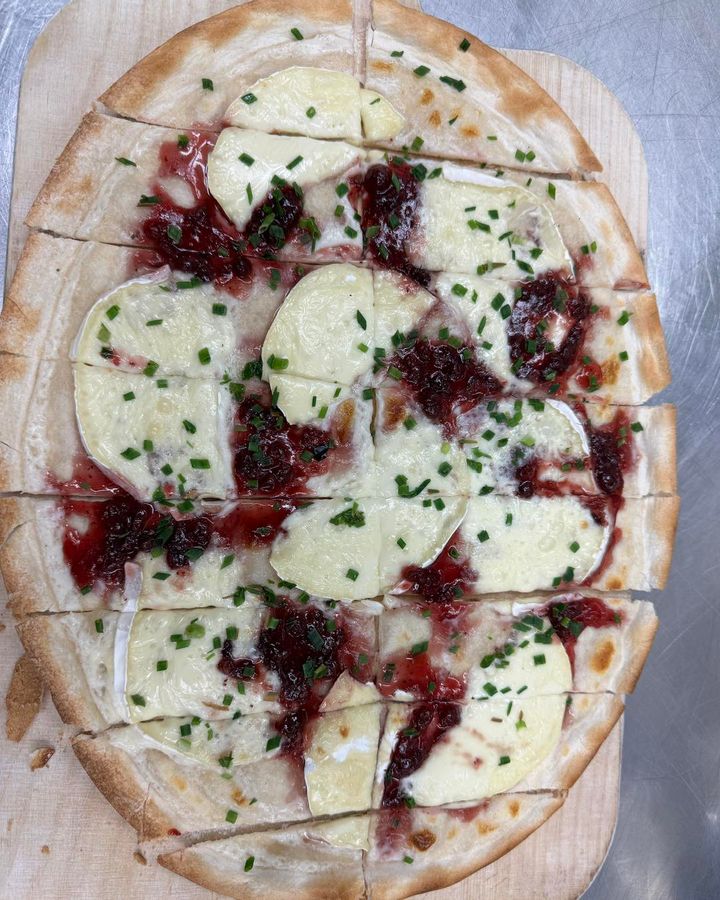Flammkuchen mit Camembert und Preiselbeeren