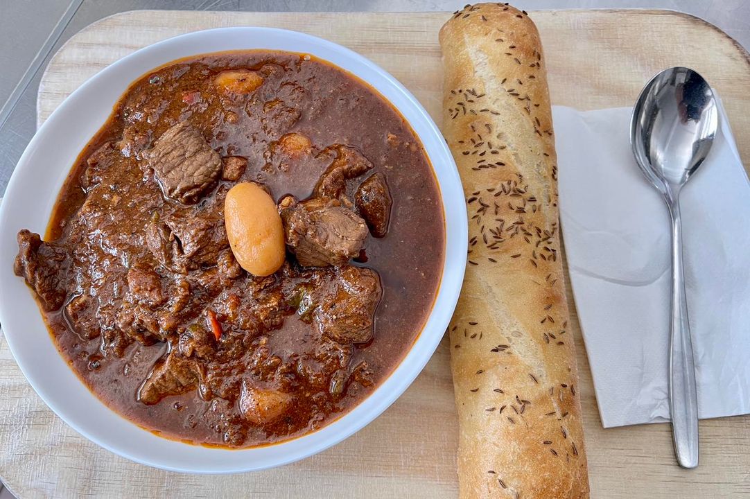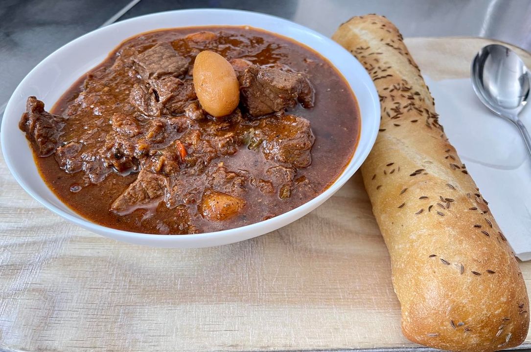 Mit Bratkartoffeln oder Holzbackofenbrot.