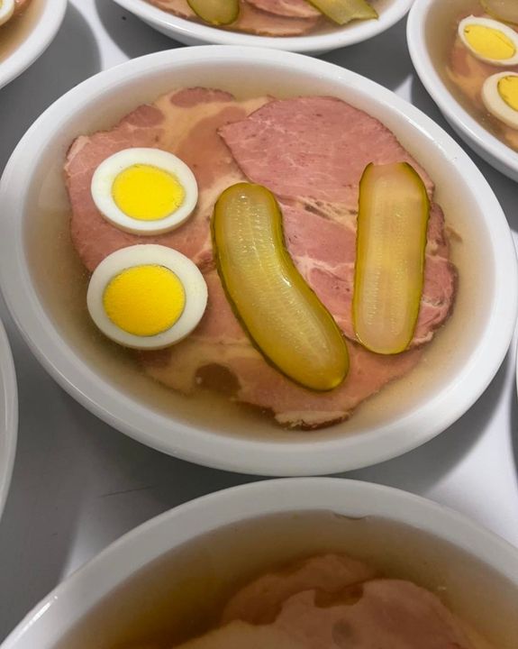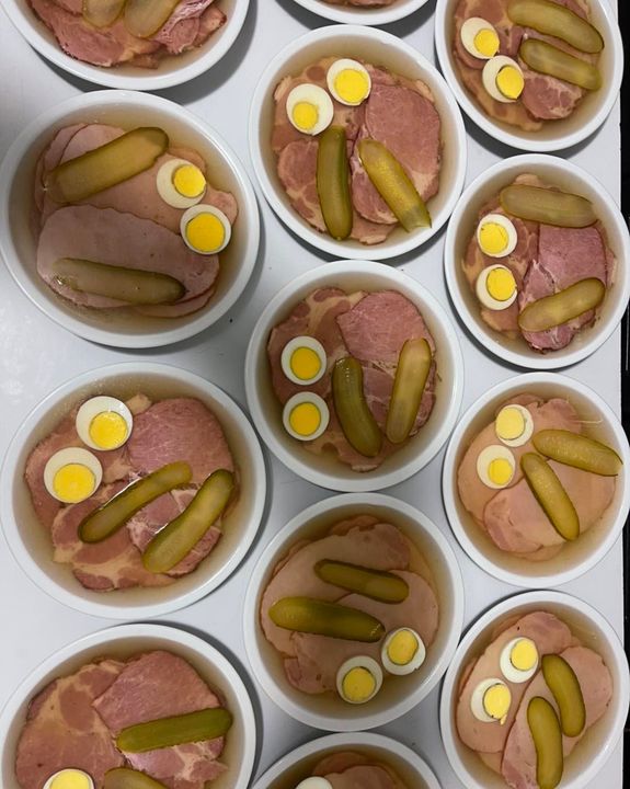 Am Sonntag haben wir zusätzlich zu unserem Wurstsalat noch eine frische Tellersulz mit Kasseler Hals oder Kasseler Rücken.