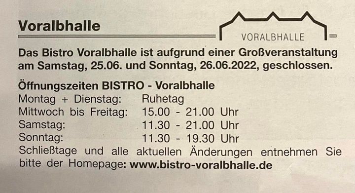 Heute im Bistro Voralbhalle