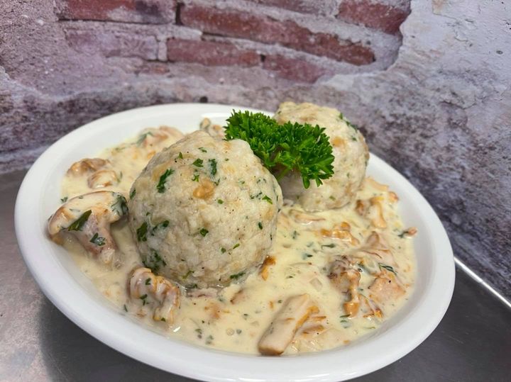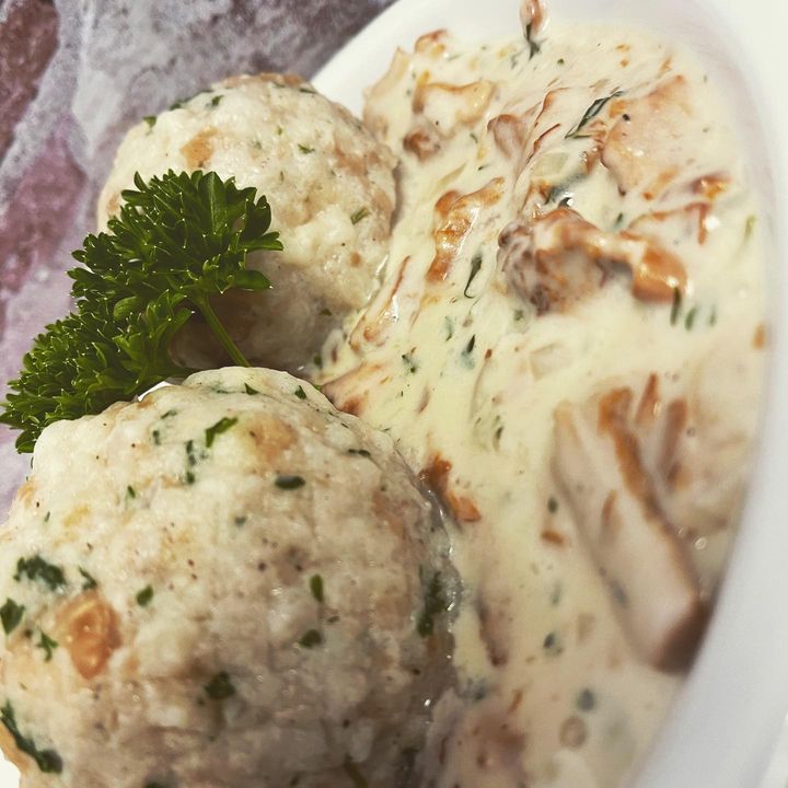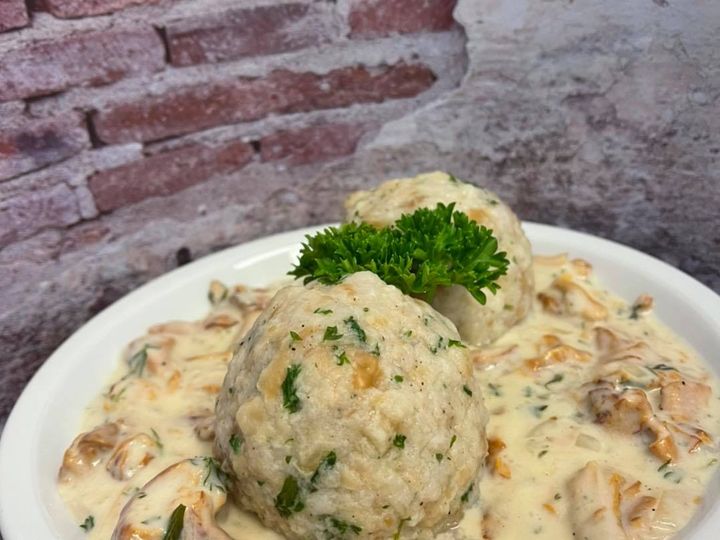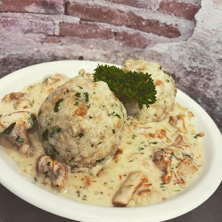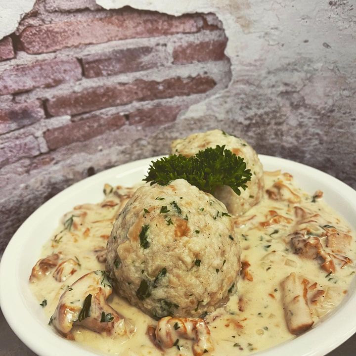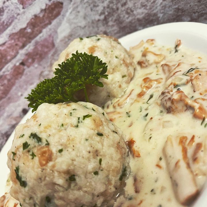 Unser Sonntags Special Pfifferlinge à la Creme mit hausgemachten Knödel (Vegetarisch)